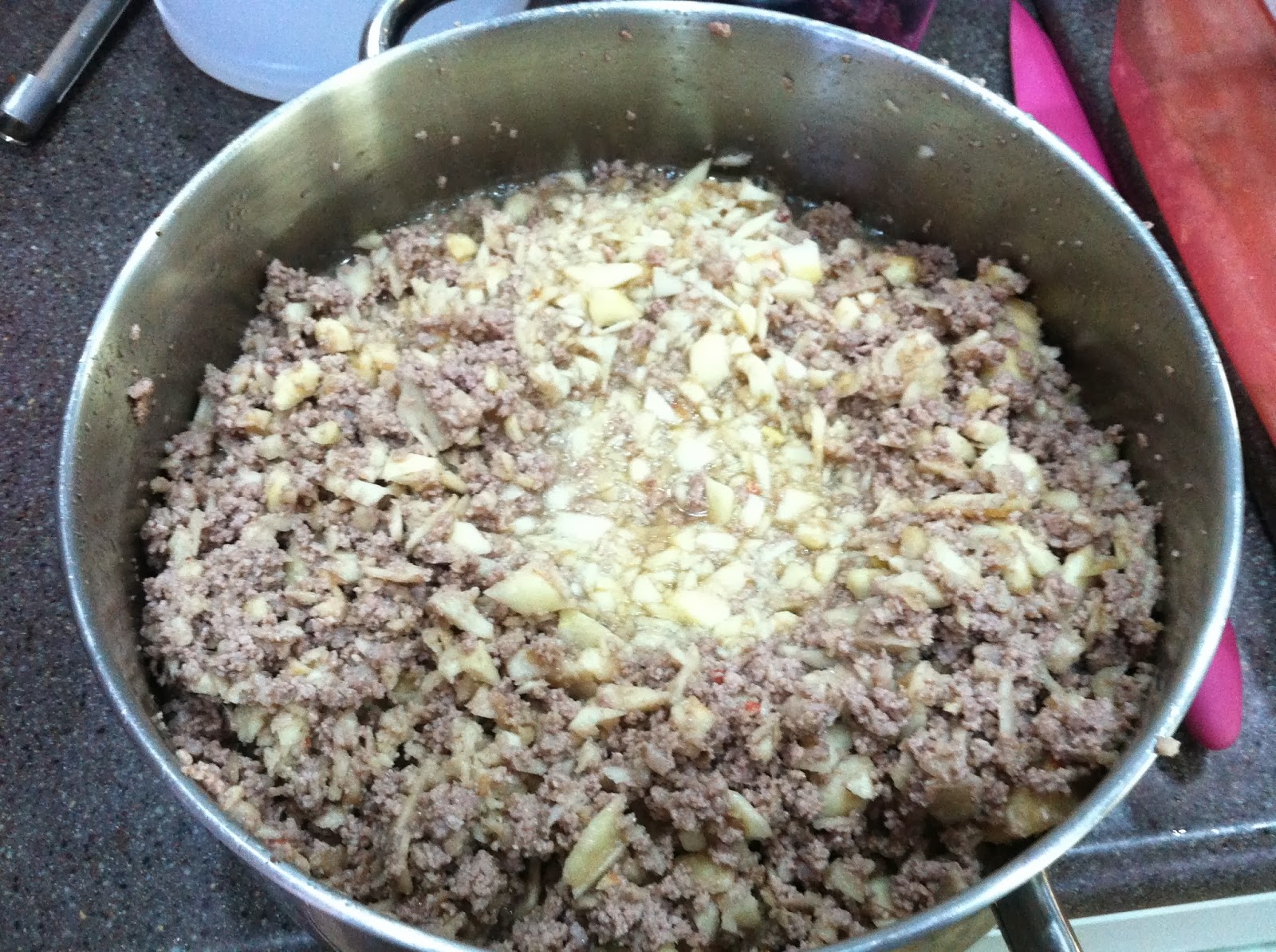 Bagged with the few ingredients I needed I proceeded back to the kitchen to prep apples, meat, and get this recipe underway. The smell was like the apple stuffing my mom makes sometimes for Thanksgiving. As the recipe cooked down for the hour it was sweet and savory and the texture was much like the cooked ground beef.